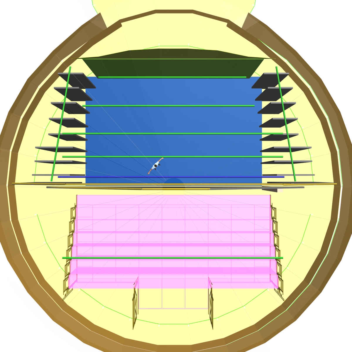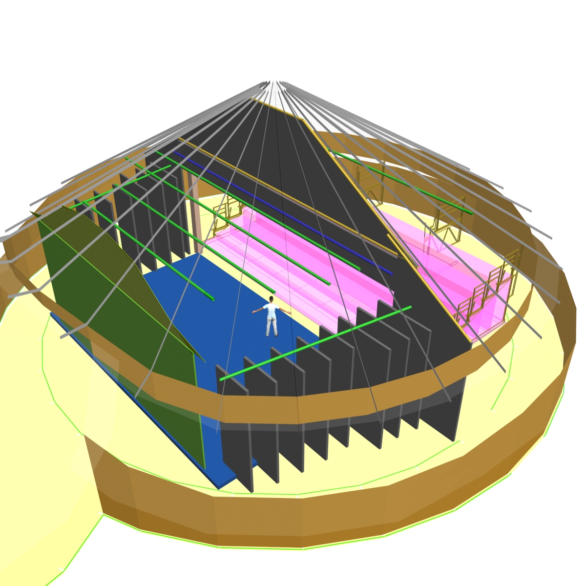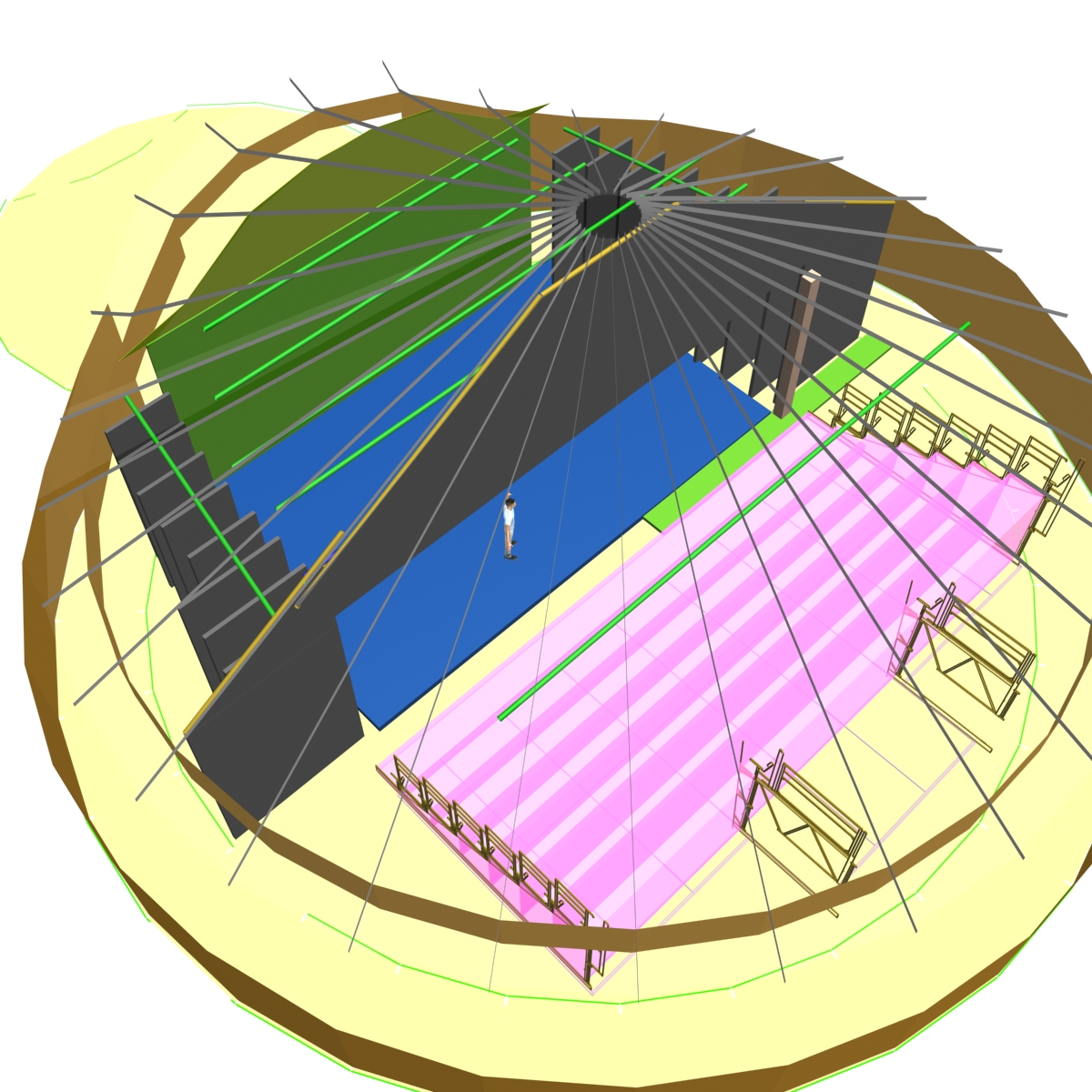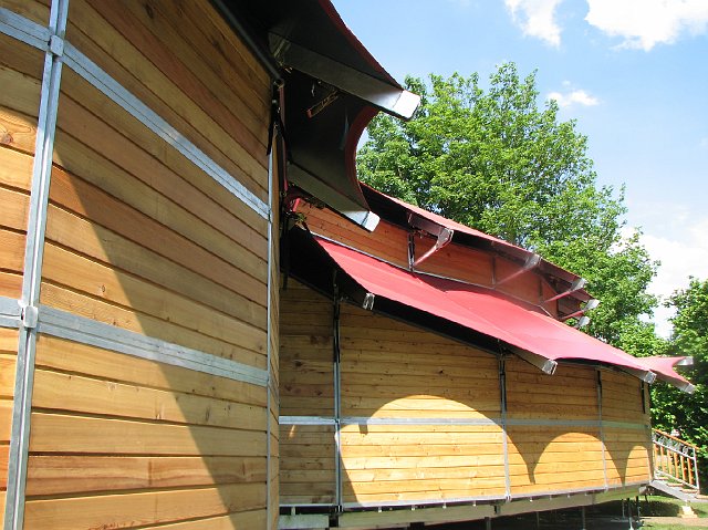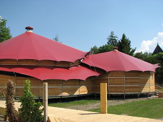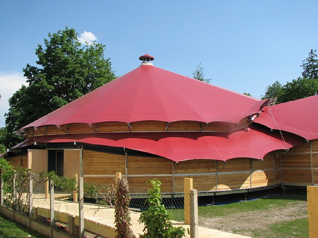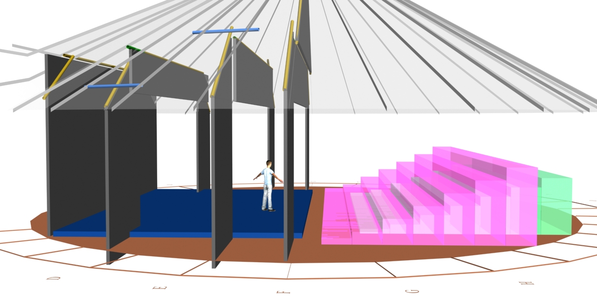 En collaboration avec un grand nombre de professionnels pour son étude et sa réalisation, et de bénévoles sur le terrain, cette structure de 18m de diamètre interieur et de 9m de haut voit le jour
