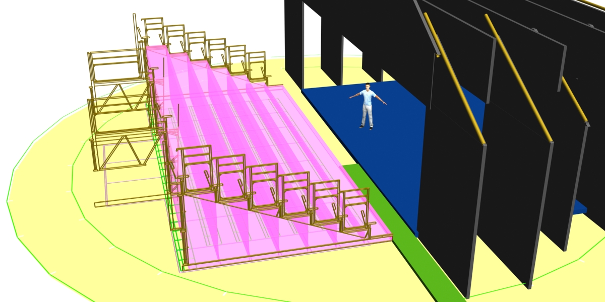 Après avoir établi les positions, les rapports scène salle et les circulations public, l'étude à été menée sur toute la partie pendrillonnage, cadrage et frises, accroches lumière.