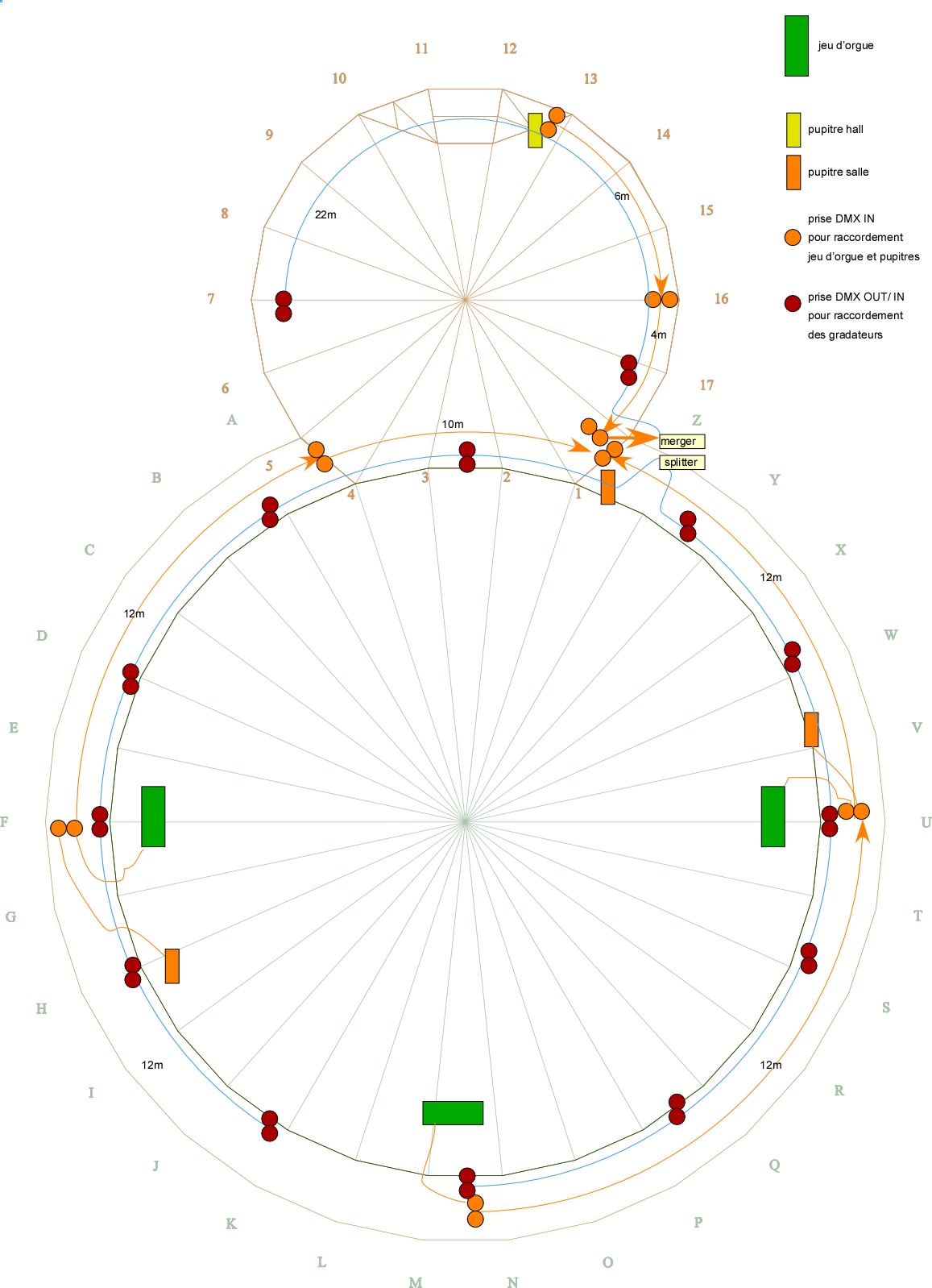 Suite à cela découle l'étude du câblage complet : puissance, services, secours, dmx, passages de câbles... et études sur la lumière.