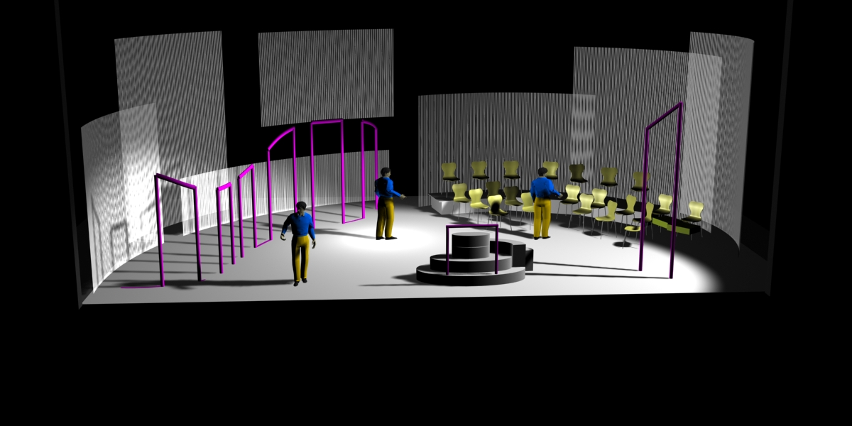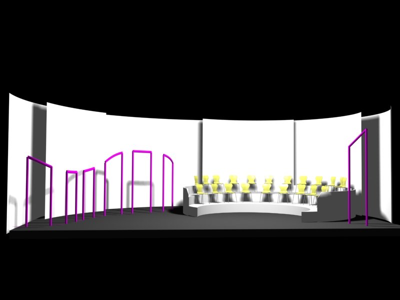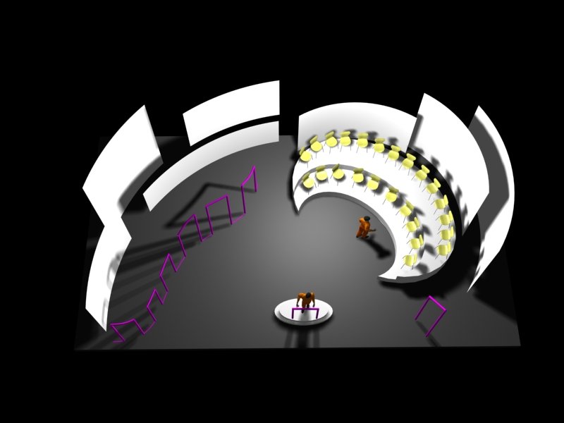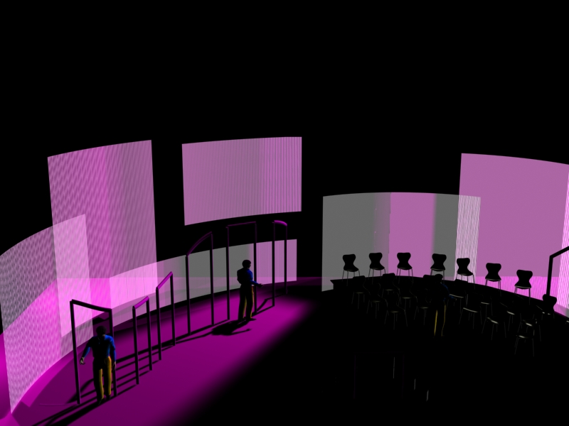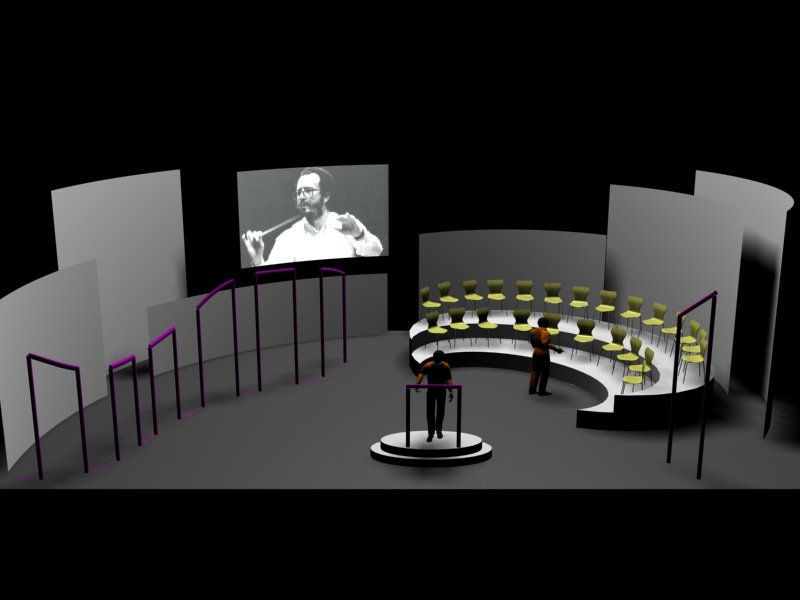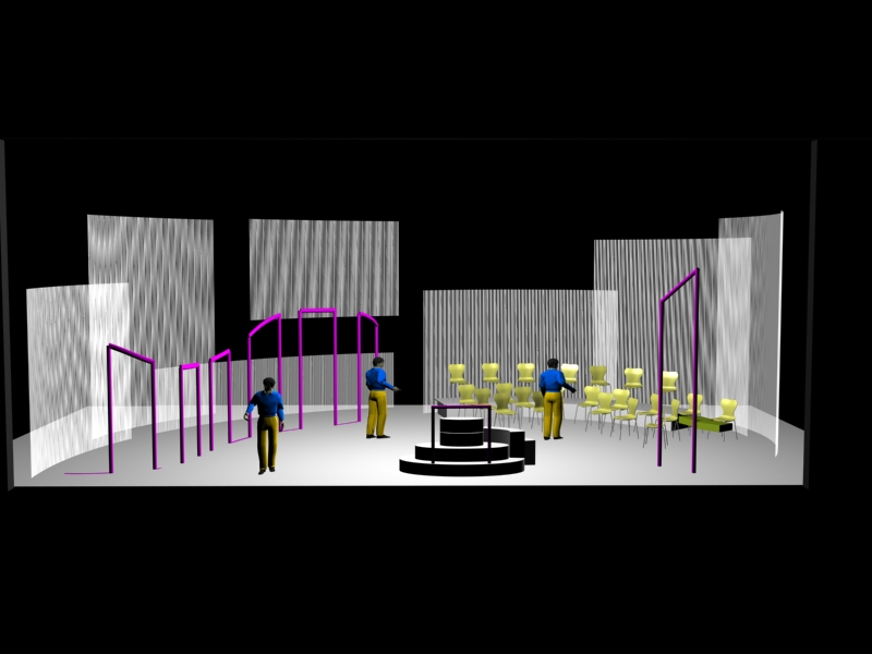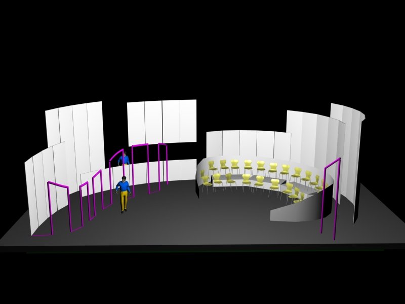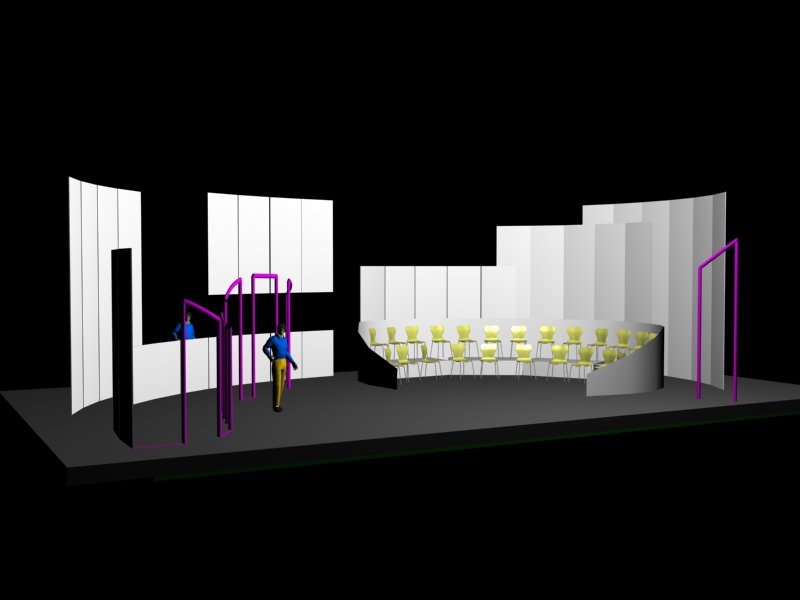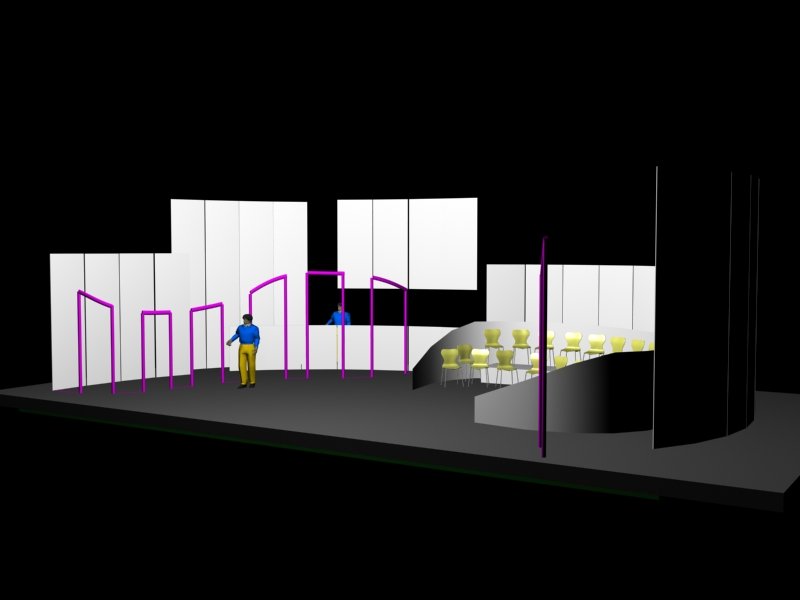 Du projet 3D aux photos du spectacle : les éléments ont été construits à partir des plans issus de la maquette 3D. En terme de proportions et de rapports de masses, la maquette donne une vision très proche de la réalité.