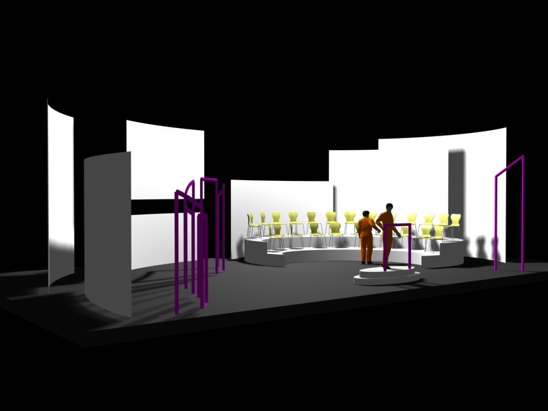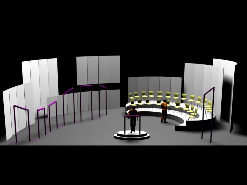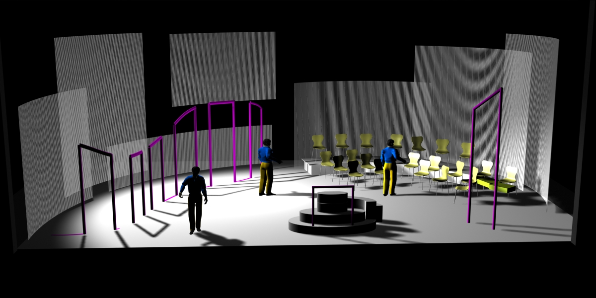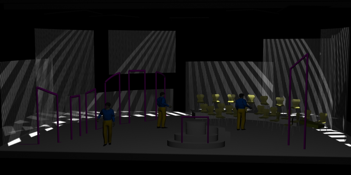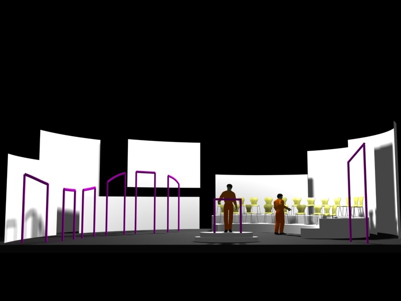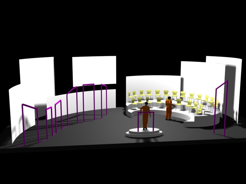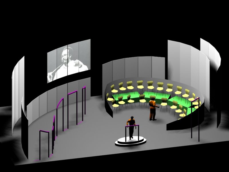 Du projet 3D aux photos du spectacle : les éléments ont été construits à partir des plans issus de la maquette 3D. En terme de proportions et de rapports de masses, la maquette donne une vision très proche de la réalité.