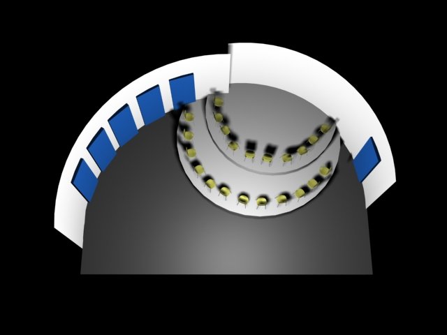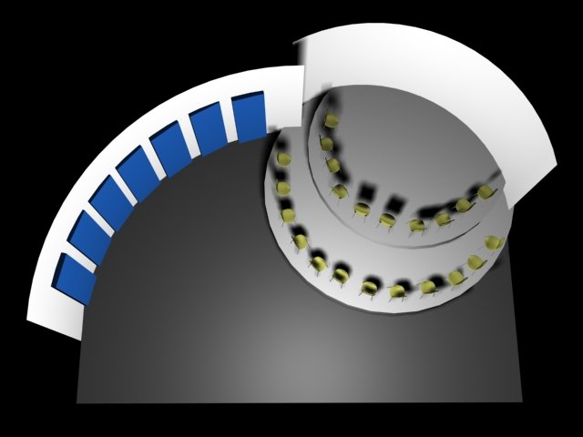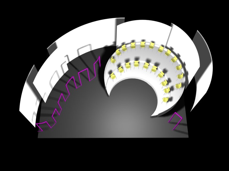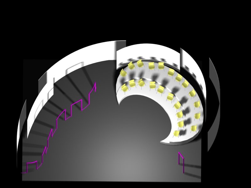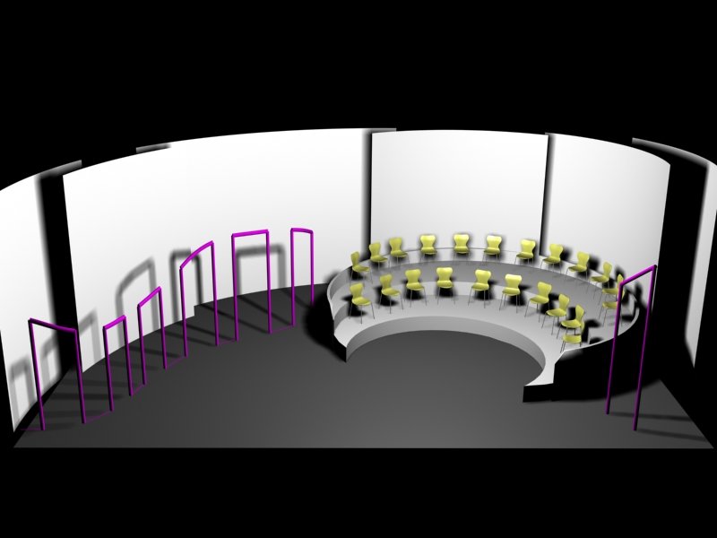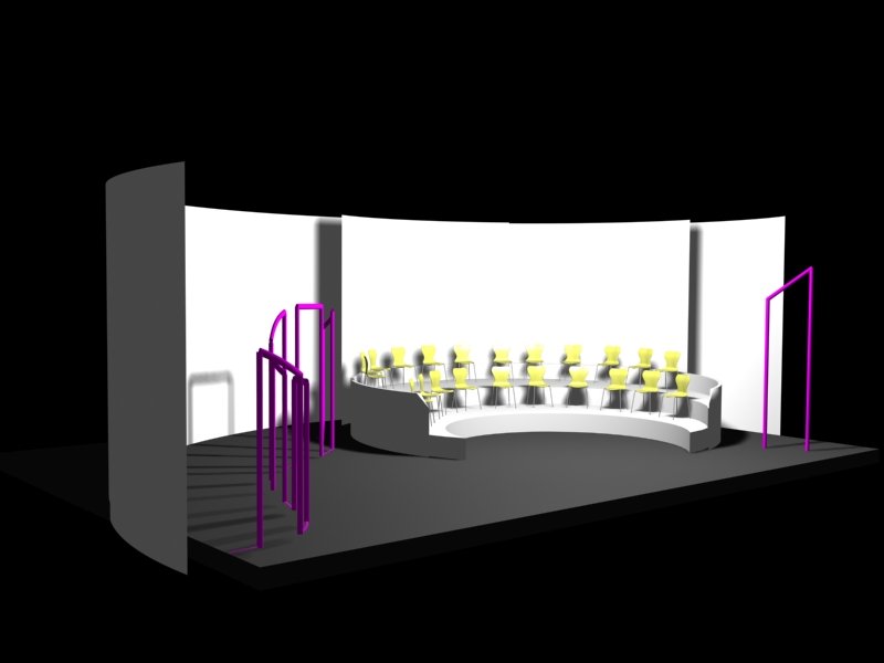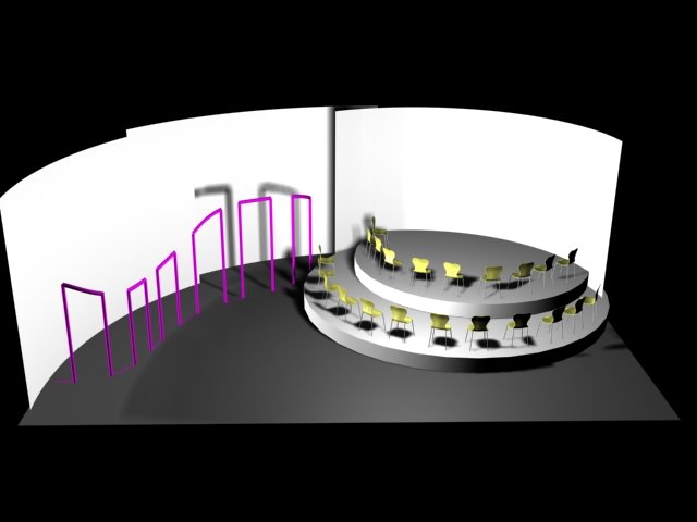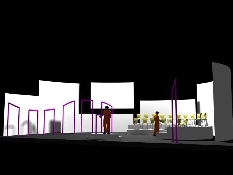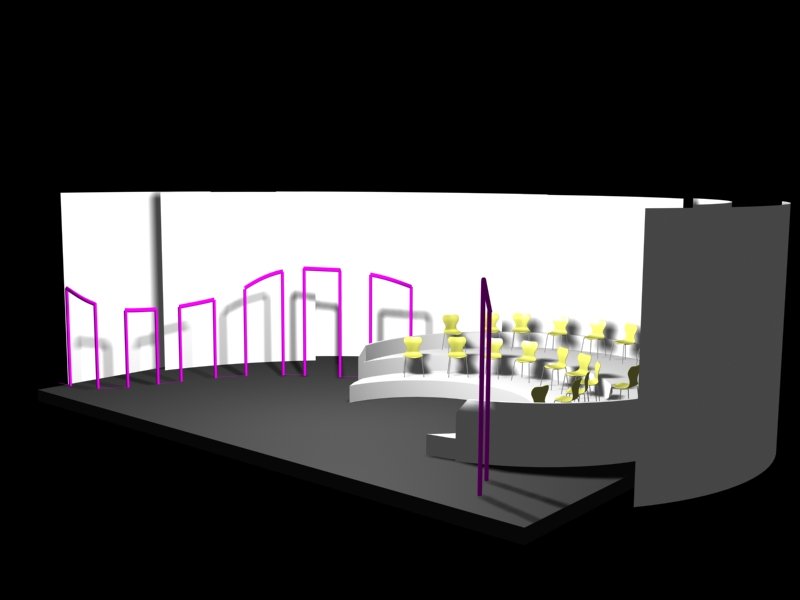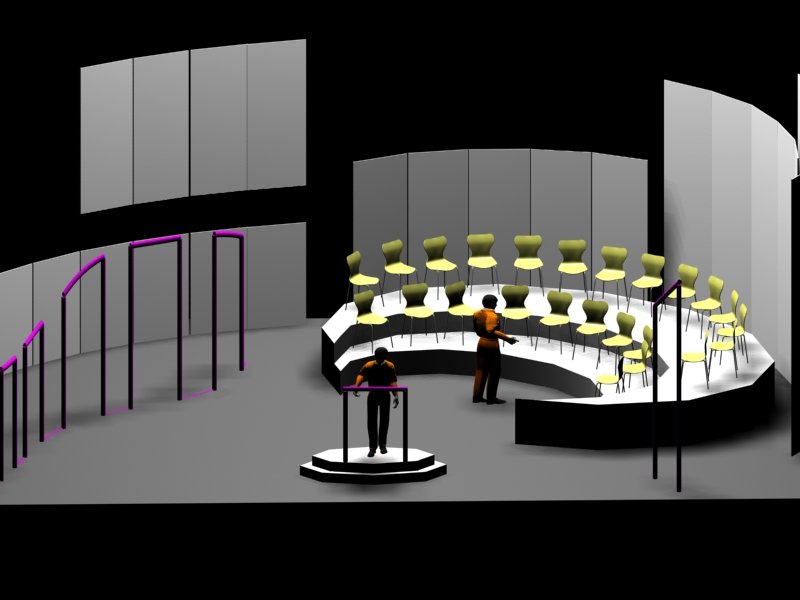 Du projet 3D aux photos du spectacle : les éléments ont été construits à partir des plans issus de la maquette 3D. En terme de proportions et de rapports de masses, la maquette donne une vision très proche de la réalité.