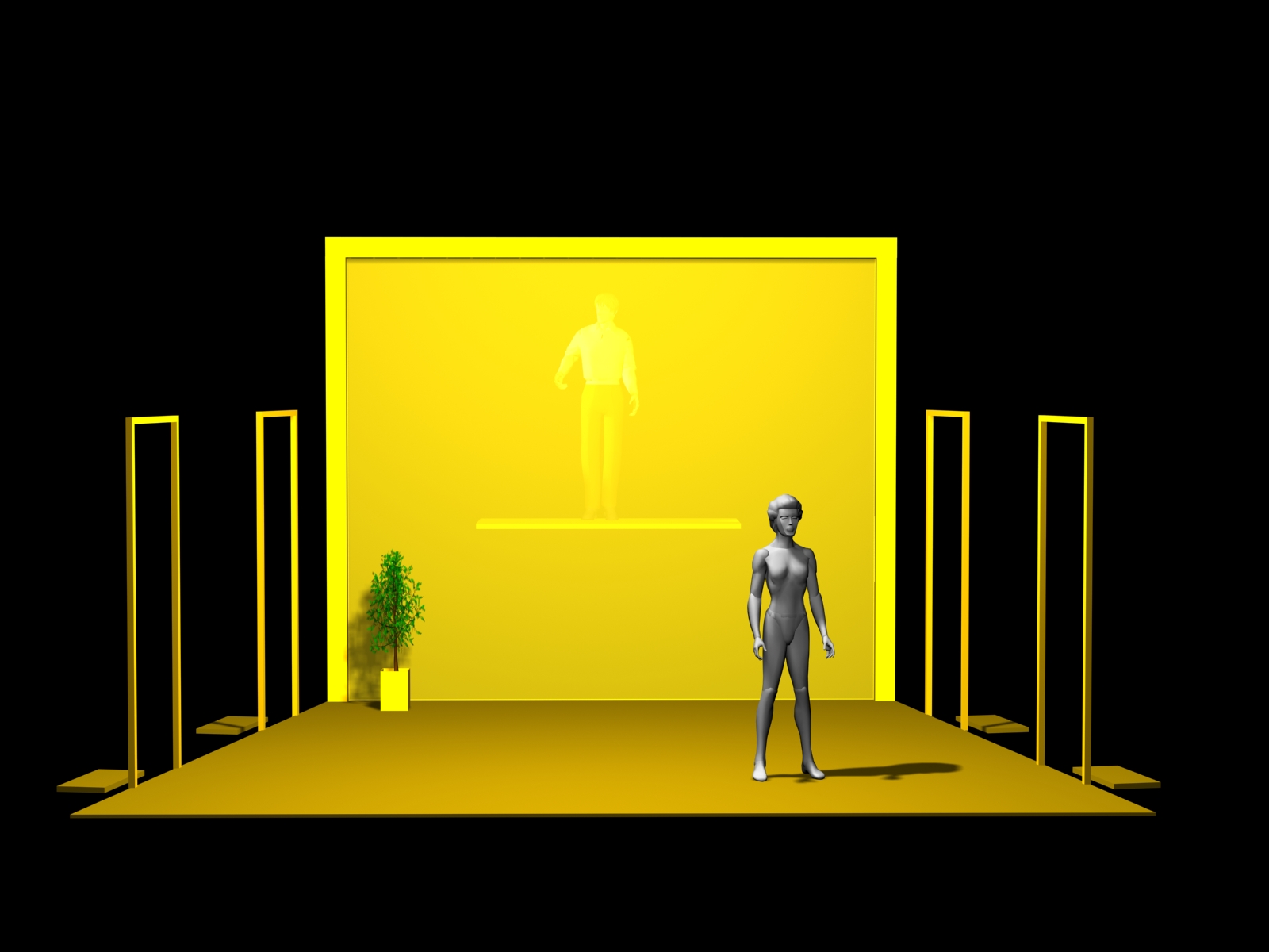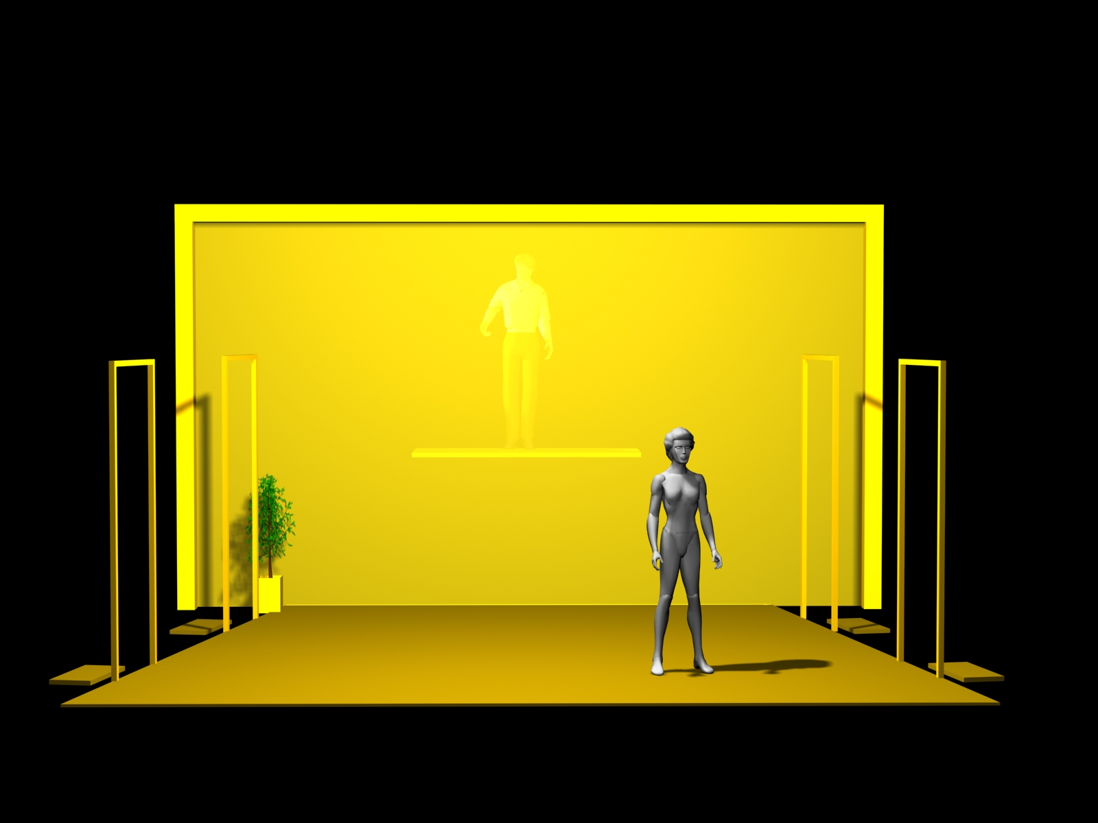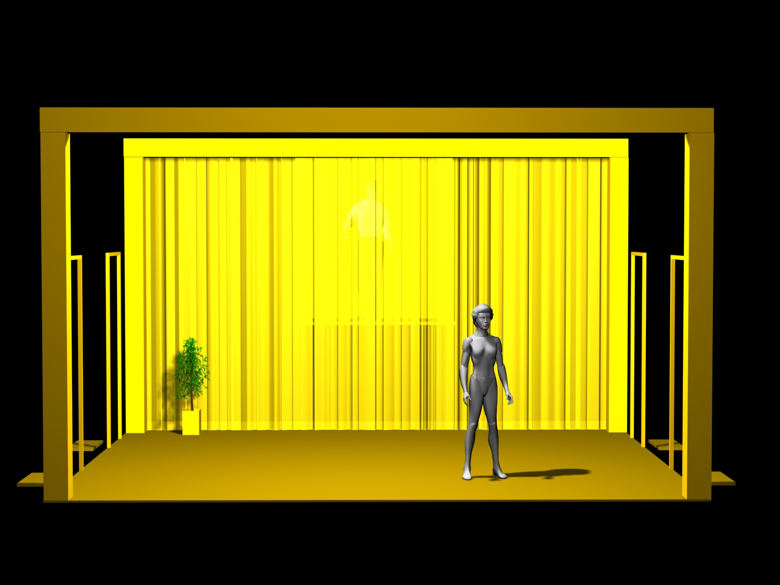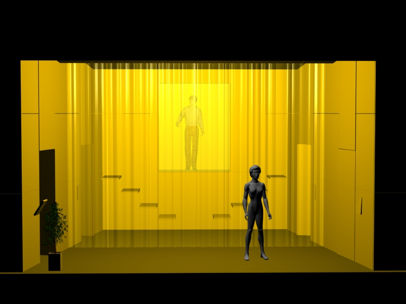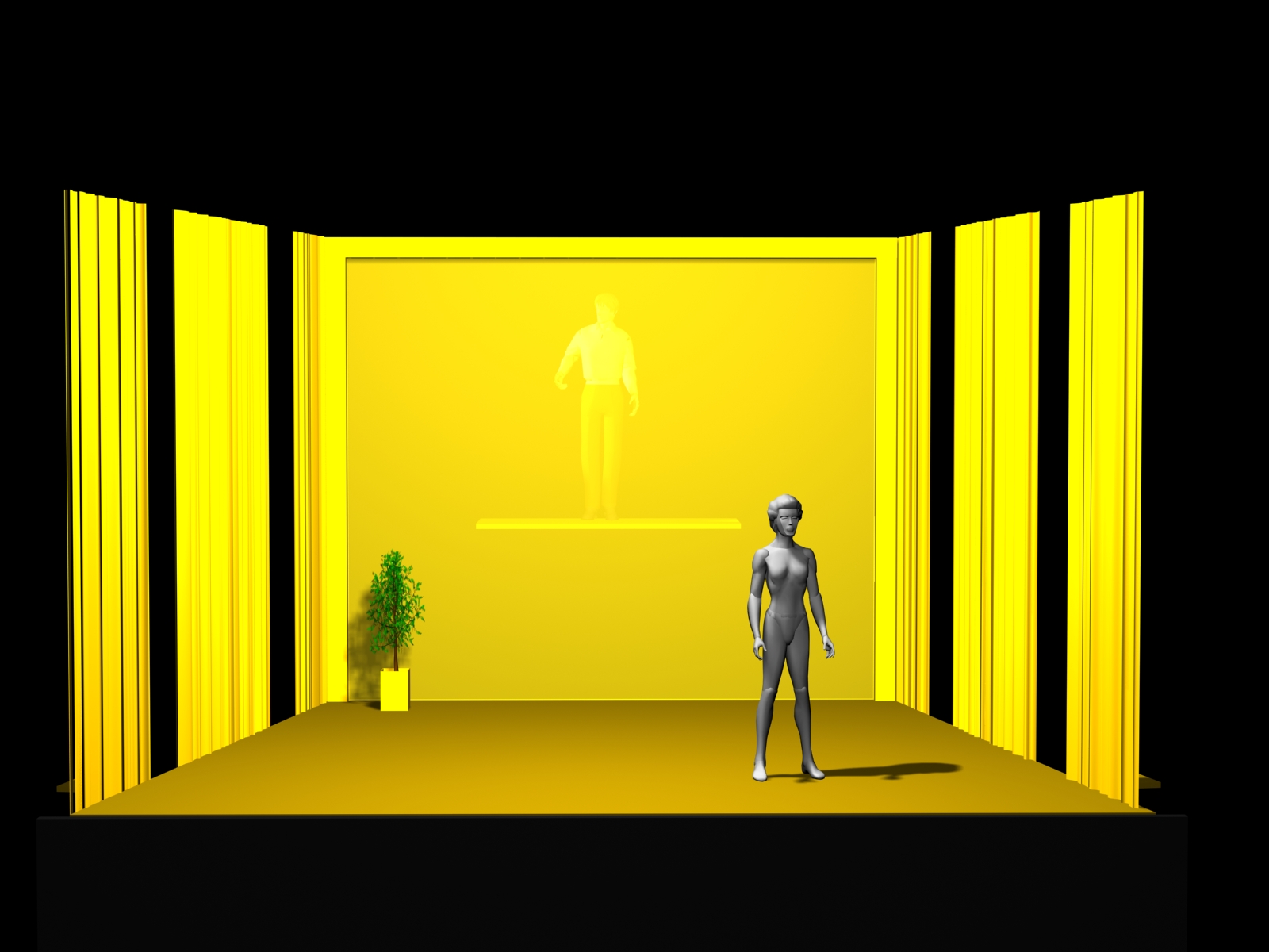 Notre recherche avec Thomas Gaubiac, était de figurer une boite, aussi stérile sans âme et vieillotte qu'un bureau de l'ANPE, servant d'écrein à nos 4 comédiens-chanteurs.