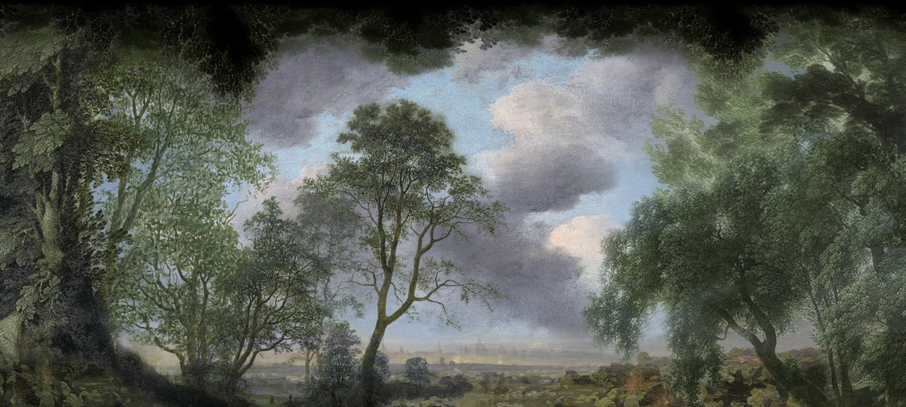 La toile peinte est une impression numérique de 10m x 4.5m. Le mobilier à été complètement patiné ainsi que le linoleum du sol.