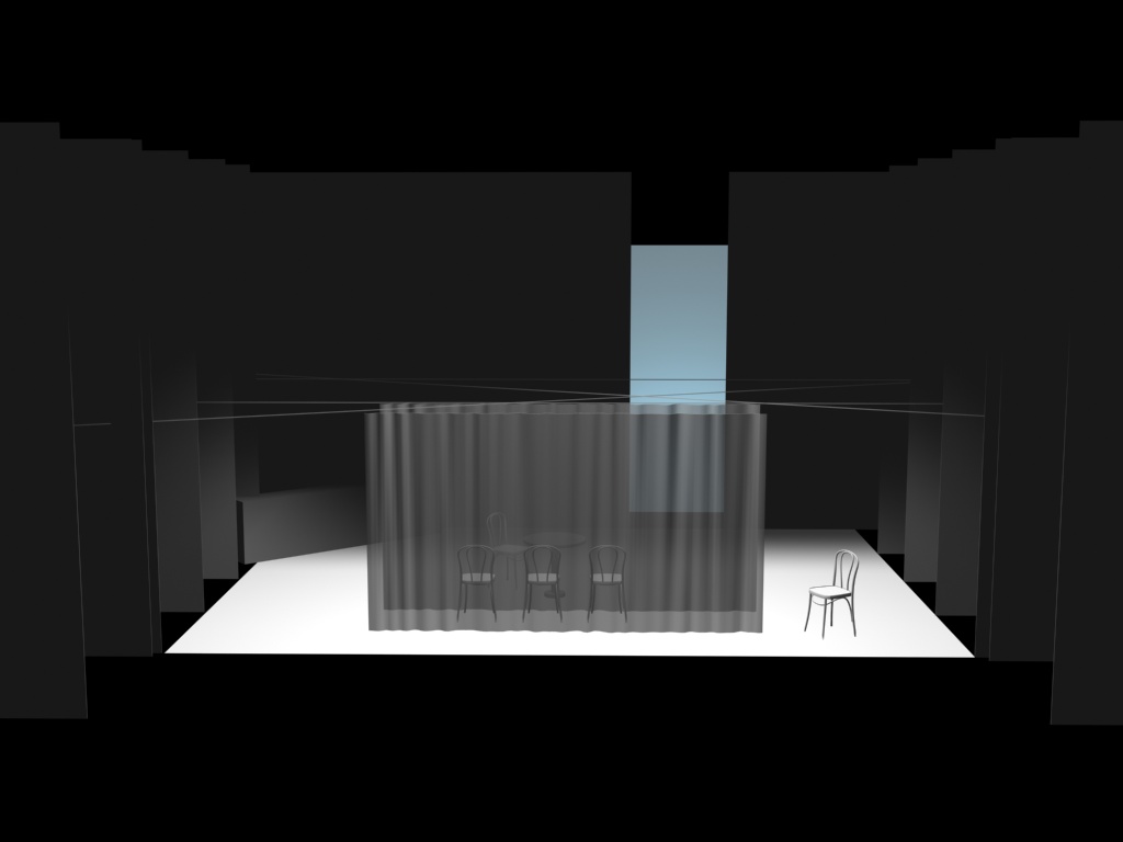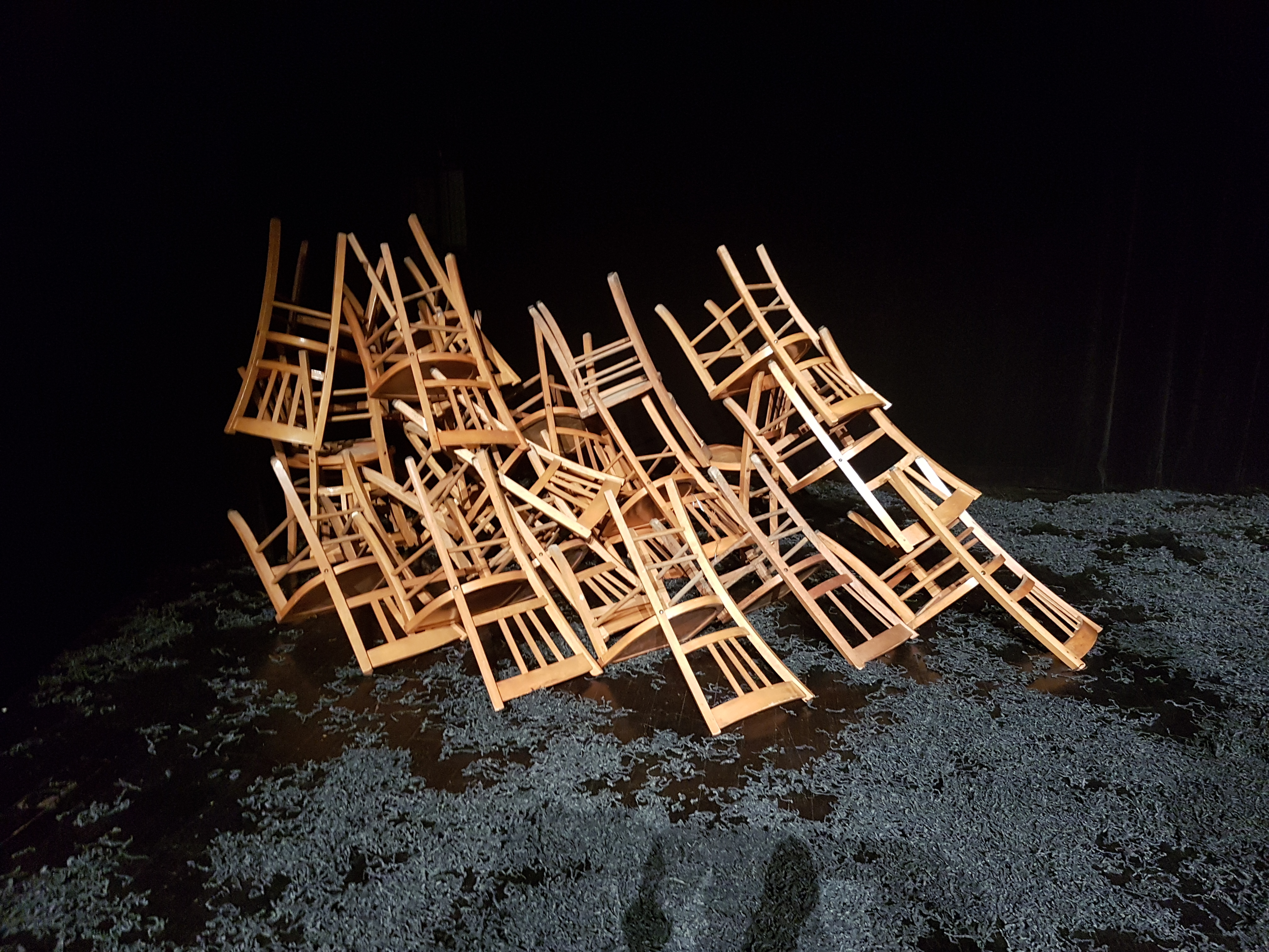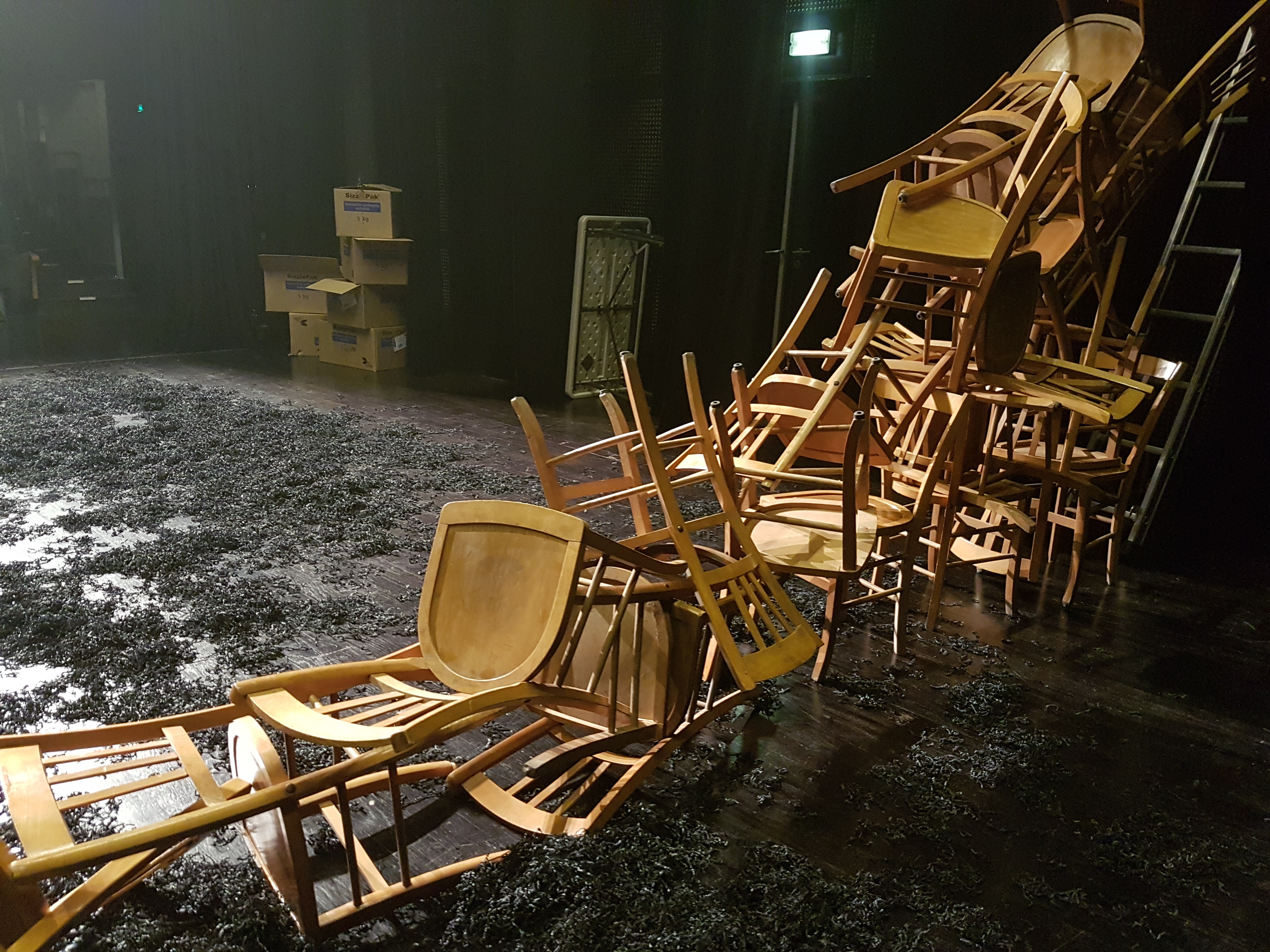 Les rideaux dénonçaient trop un dispositif théâtral et nous les avons supprimé pour ne travailler qu'avec des chaises.