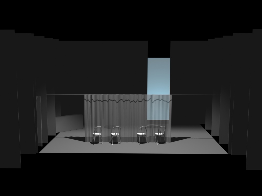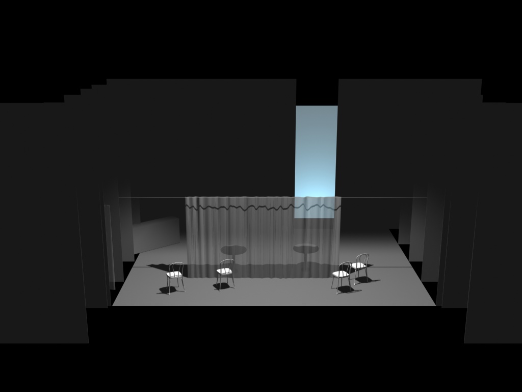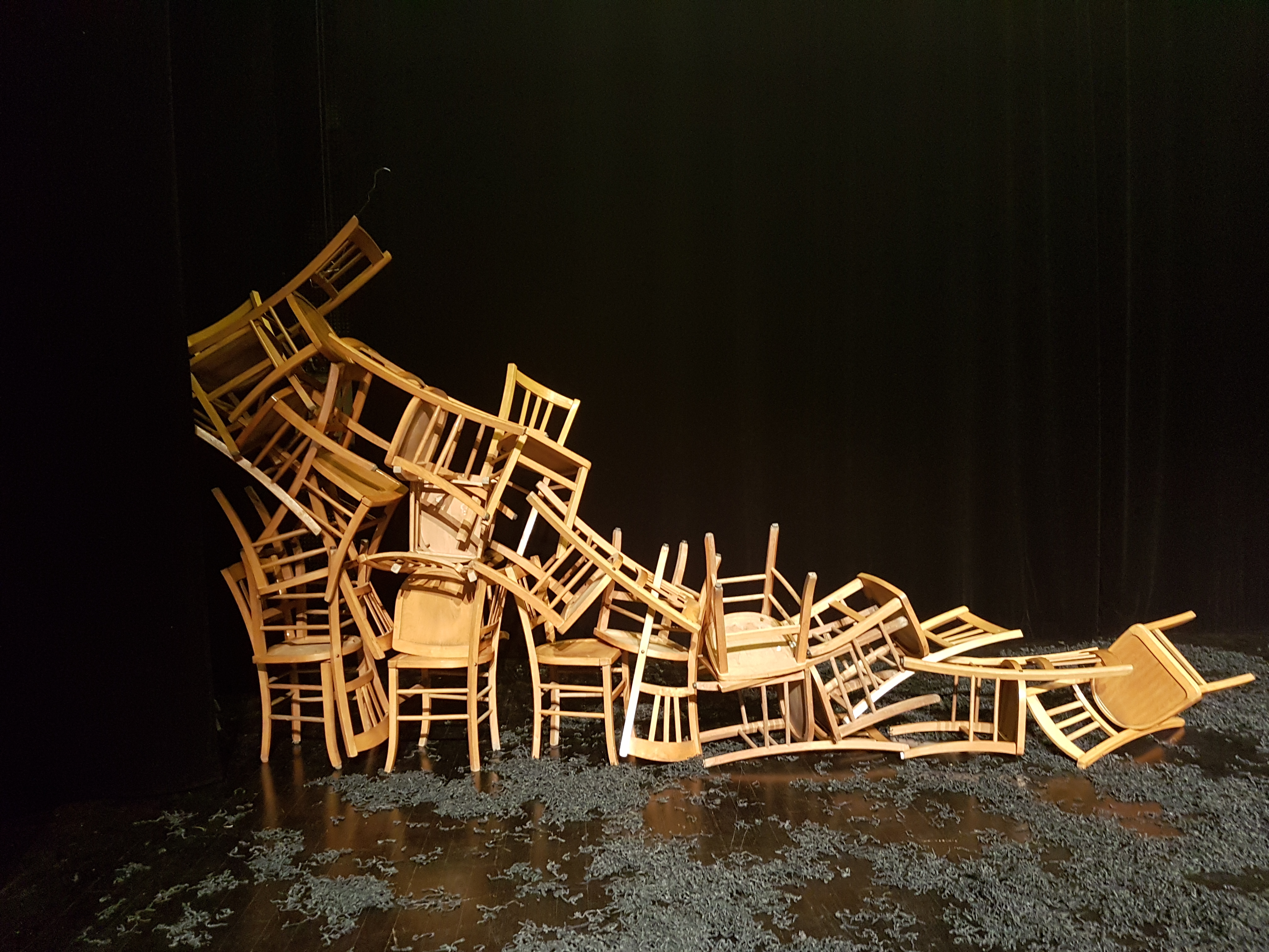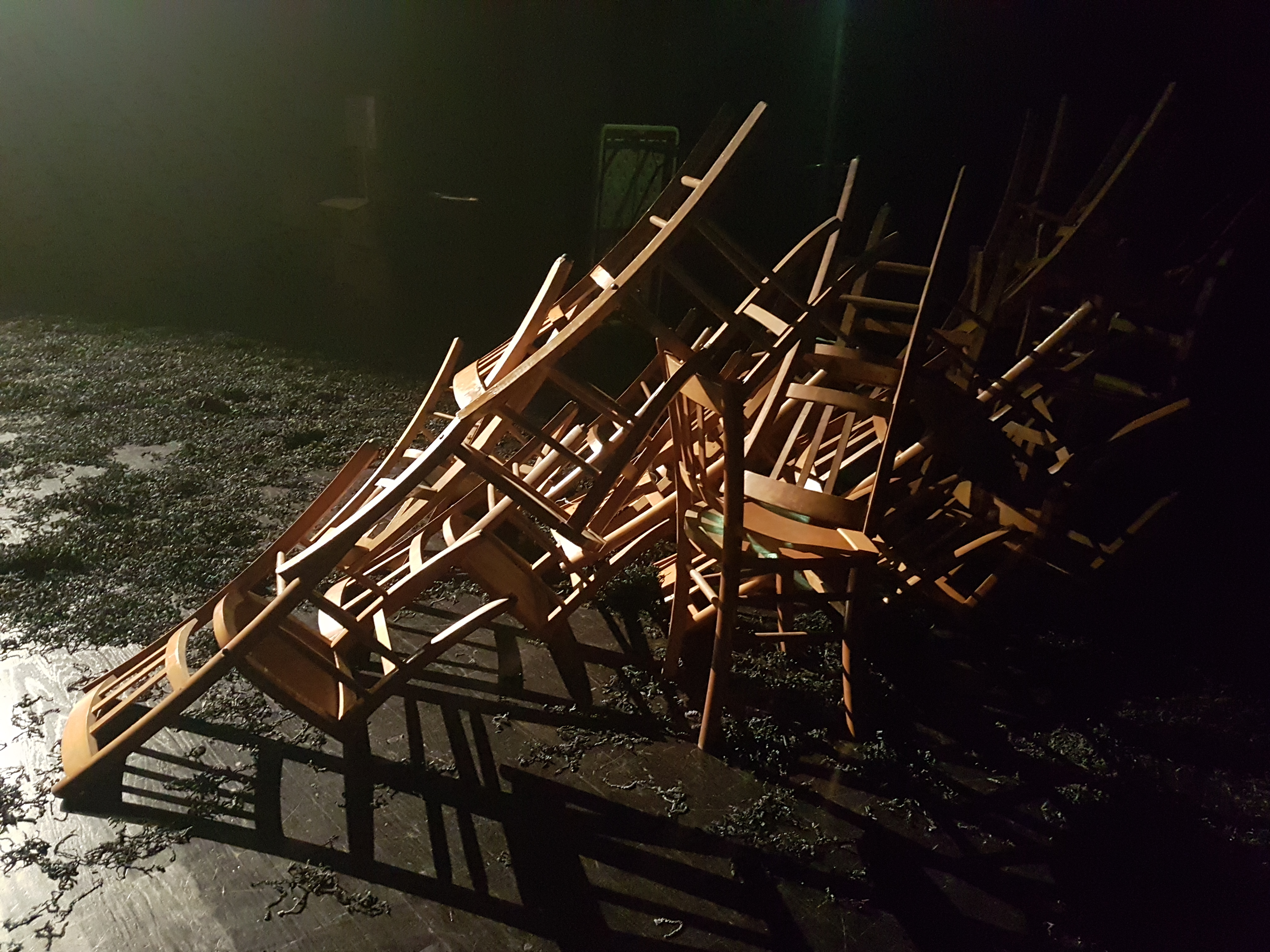 Les rideaux dénonçaient trop un dispositif théâtral et nous les avons supprimé pour ne travailler qu'avec des chaises.