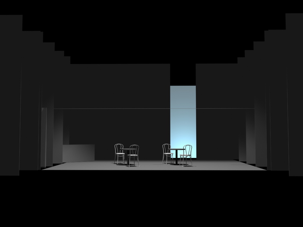 Une toile cyclo noire donne une ouverture sur un horizon coloré...