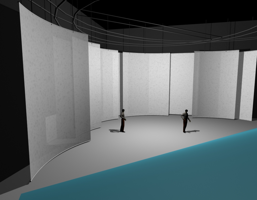 Nous avons réalisé un espace blanc en courbe. Avec la costumière Dominique Fabrègue