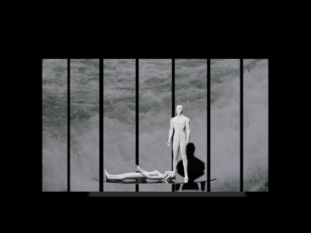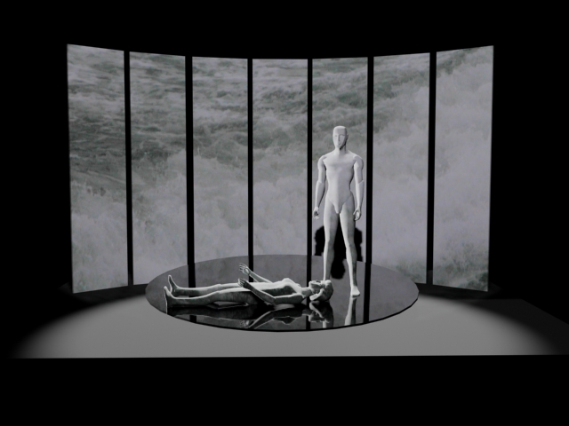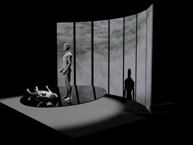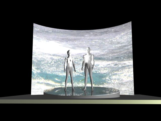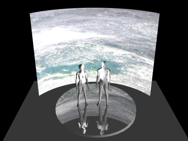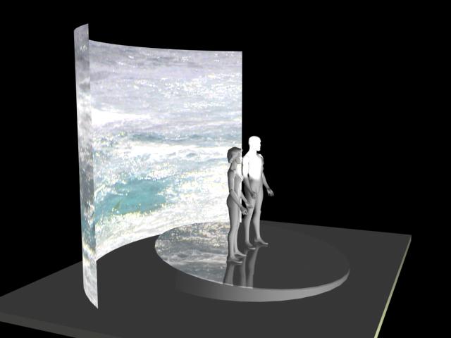 Un sol miroir et 7 panneaux de projection de 3.20m x 80cm de large avec un léger jour entre chacun d'eux.