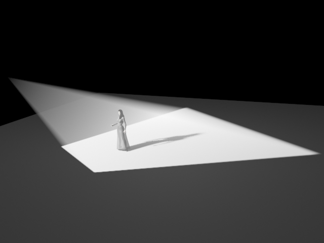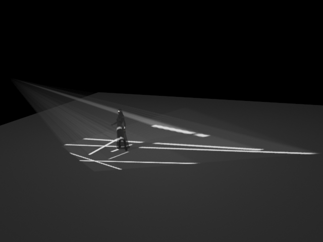Les amplitudes de mouvement sont rythmées avec la danse. accélérations, ralentis... Les lignes deviennent des balayages de lumière dans l'espace, puis l'espace est créé par des entrées de lumière qui se rétrécissent en forme de carrés (anamorphosés dans ces images pour qu'ils paraissent carrés au plateau).